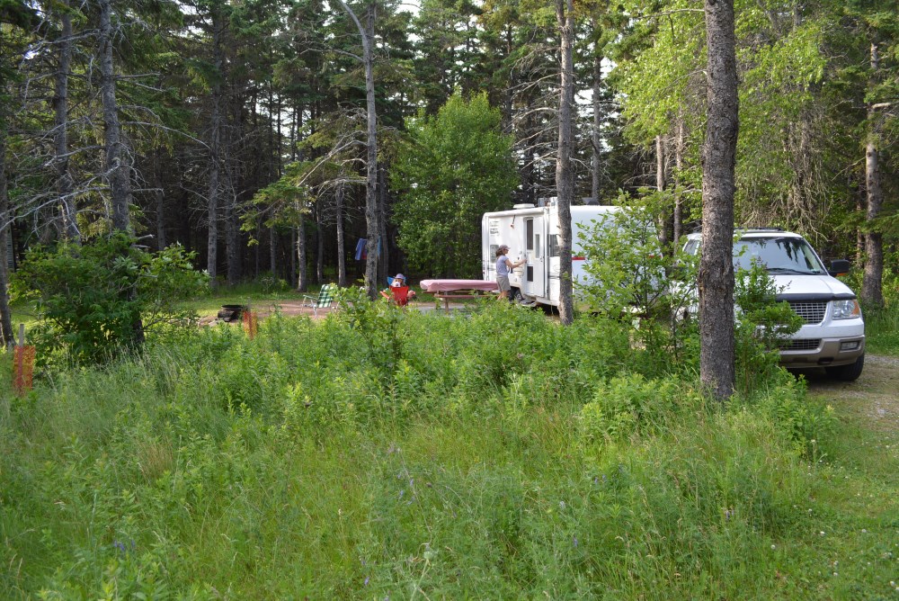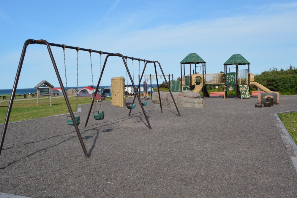 Cavendish Campground is a big campground that has everything you could possibly want in a campground. There are over 200 sites of every size and configuration imaginable. There are inland un-serviced sites, un-serviced sites along the ocean, sites with water/electricity, sites with water/electricity/sewer, back-in sites, pull-through sites, plus a handful of oTENTik sites. The majority of the campground is forested but the sites along the oceanfront are wide open, as you might suspect. These open sites are all un-serviced and by and large only suitable for tents or very modest trailers.