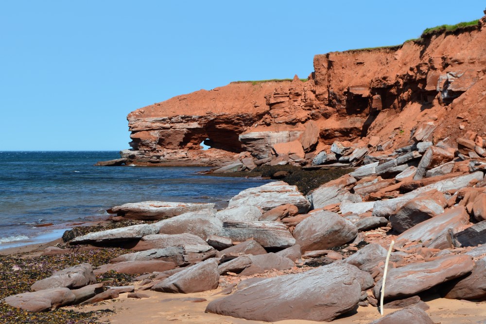 And it is worthwhile going for a drive, or a longer hike or bike ride. The ocean side road and trail that takes you all the way to North Rustico is beautiful with several pullouts worth stopping at to explore. We particularly liked MacKenzie Brook and spent some time there beachcombing. Looking to the east from here, you’ll even see a natural arch in a rocky prominence. All these red rock formations with the blue ocean lapping beneath will quickly fill your cameras with gorgeous shots.