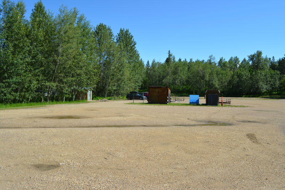 Near this launch area (and also one of the picnic shelters) is where you will find the large, sprawling group campsite. It’s basically a parking lot with garbage bins and a pit toilet. A new water tap and nearby flush bathroom have been built but the group site itself remains nothing more than a parking lot. I have no idea why they even bother calling this a group site and it really is a shame because the entire Astotin Lake area would make a great locale for a group camping outing.