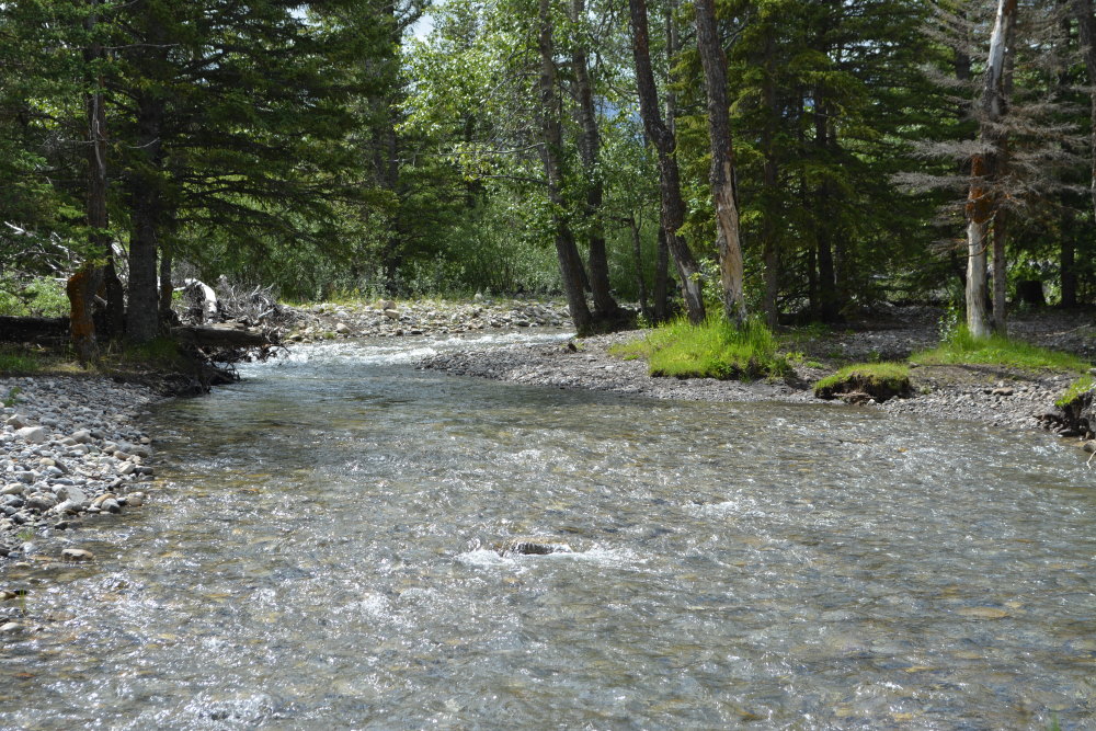 As you can imagine, there are no services here. No power. No sewer. No water. You either bring water with you or you scoop it up from the Red Deer River that flows beside Bighorn Campground and boil it. It’s cool, clear, mountain water and colder than a witch’s tit. It’s a shame you have to boil it.