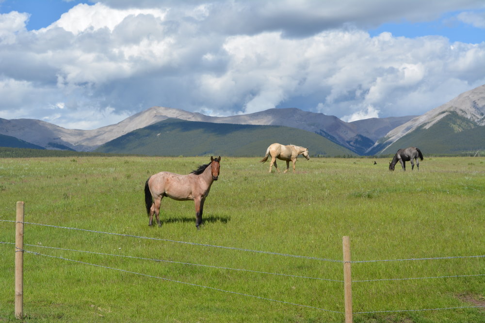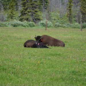 The modern world of ATVs and quads has diminished the need for such horses, so the ranch isn’t as busy as it was during its heyday (hay day? HA!), but it’s still active. We saw a few horses in the fenced pastures west of the campground. These animals are gorgeous set against the rocky mountains of the eastern slopes. We also unexpectedly saw three bison there too. Perhaps they are sick or were part of the recent bison relocation program from Elk Island National Park into Banff?