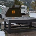 The pavement markings strung out a fair distance on this stretch of road suggests that this place gets REALLY busy on Sundays. Even with the dearth of campers during our grim weekend, we had to wait a few minutes for another RV to dump its load. Suffice it to say, include this likely delay in your travel schedule. Or simply plan on using a dump station elsewhere (there’s a free one in Fort McLeod, for instance).