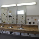 Containing flush toilets (mens has a urinal), a handicap access stall, five shower stalls, and four sinks, these are everything you’d want when Nature calls.