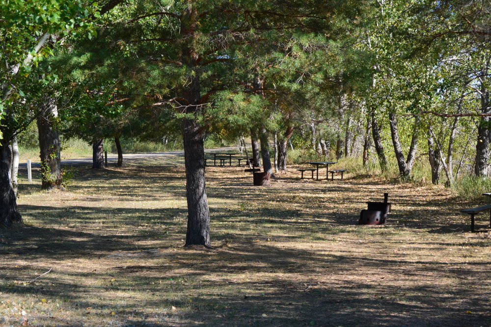 The campsites have gravel drives on which to park your RV and tow vehicle but they’re not overly fresh. Furthermore, the surrounding grass is dead or dying by the end of season. I suspect its this way most of the summer considering the heat and lack of precipitation common in these parts.