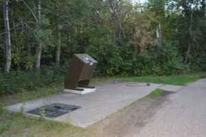 Unfortunately, I can see no way in which two trailers could use these two outlets at the same time. They’re both located on a concrete pad but positioned perpendicular to the access road. This leaves one outlet usable and the other facing the trees. Seems odd. Perhaps I’m misunderstanding the layout but consider it a single user dump station.