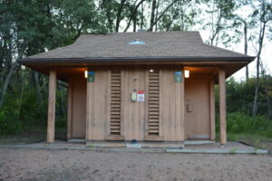 The peculiarities keep coming, too. Let’s talk about the shower house. A shower house at a park like this was unexpected but nonetheless a draw. Where there are showers there are surely flush toilets, or so one would think. Well, one would be wrong.