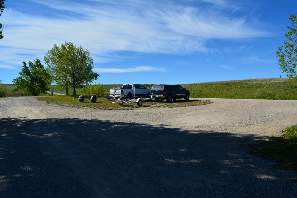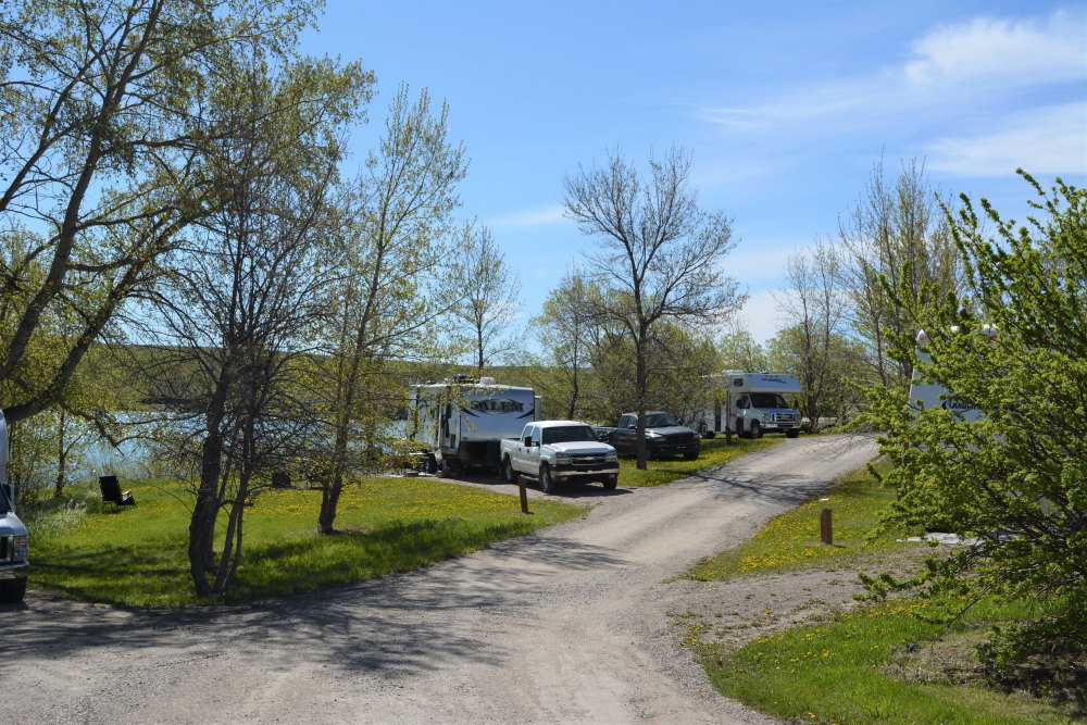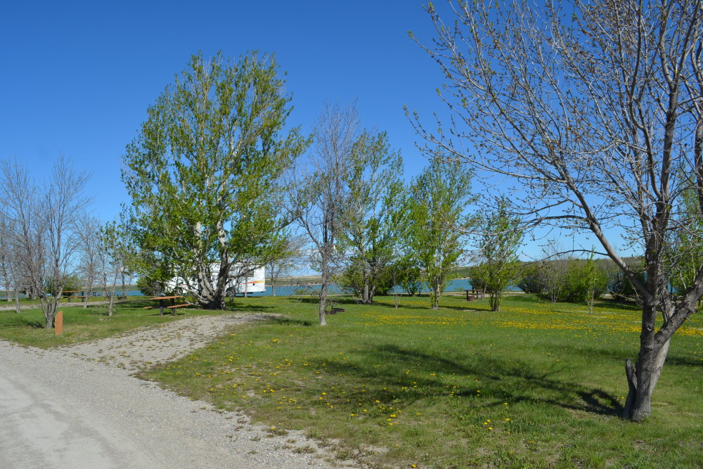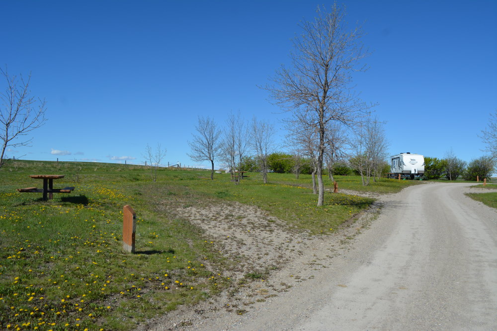 Upper St. Mary campground is visible from the main highway as you cross the dam. A gravel range road a couple hundred metres south of the reservoir takes you a further couple hundred metres west where you intersect a gravel access road to the campground and the St. Mary Sailing Club private campground. In total it’s about two kilometres from the dam.