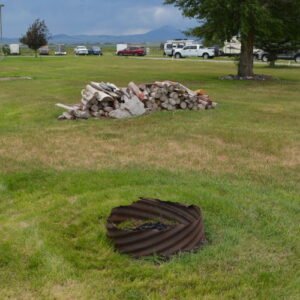 To the west of the wood pile is a single horseshoe pitch. This was fun to see and perhaps hinted at the typically older campers that tend to frequent Countryside RV Park. The place has no playground, for example. One would think if a steady stream of families with children were visiting, some kind of playground would reside in this large grassy area.