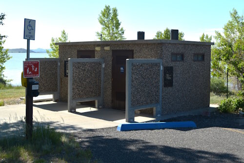 The original boat launch, which still functions as such, has a vault toilet for use. It’s similar in design to those in North Fork Campground. An accessible parking spot is reserved in front of it which is laughable since there isn’t an inch of concrete to be found anywhere. Bring your offroad wheelchair.