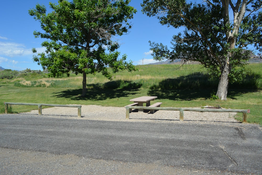 Situated on a point bar of the Shoshone River, the one advantage this loop has over its big brother is a forested area between the campground and the river. There are some genuinely large trees, cottonwoods maybe, that offer full shade over the lands beneath.