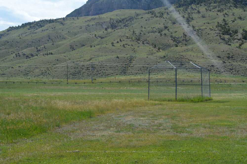 The irrigated postage stamp of lawn is home to the following: picnic shelter, water tap, vault toilet, firepit, grass field, basketball court with hoop, volleyball court with net, baseball diamond with backstop, playground, and fishing in the river. It’s impressive and all irrigated, green, and mowed.