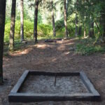 Pullout sites have an arced drive next to the living space. The two are separated by large boulders in some cases. They also didn’t look as elevated off the forest floor as much as their back-in cousins.