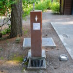 There are four water taps in the park, each located next to a pit toilet. These are interesting tap contraptions, with a large, brown casing from where the water tap extends. On top is a drinking fountain, below, a catchment drain.