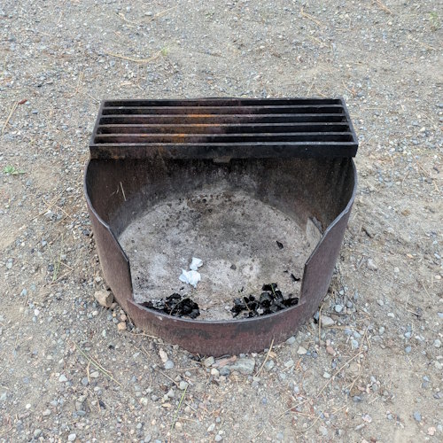 Each campsite is adorned with the usual BC Parks amenities. There’s a steel firepit with a stationary grate covering almost half the surface and picnic table.