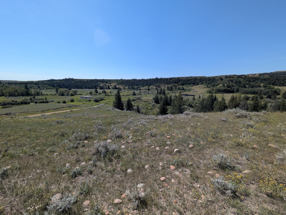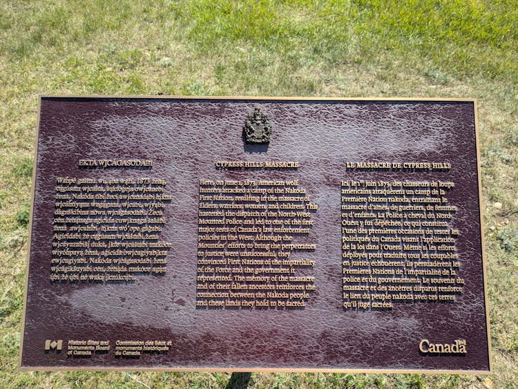 Mapping also indicates this is the actual location of the Cypress Hills Massacre that triggered the creation of the NWMP and building of this fort. That’s some heavy history and I’d have expected more than dilapidated log buildings, an outhouse, and a faded sign commemorating it.