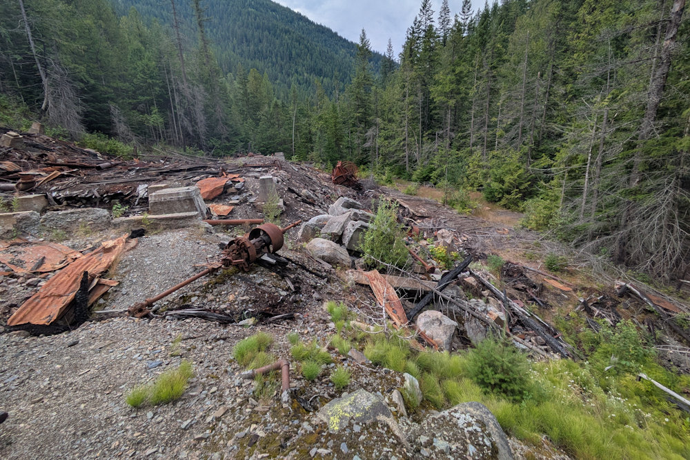 There was a post office, hotel, and a few shops in Alamo Siding, but the town was overwhelmingly dominated by a state-of-the-art ore concentrator mill, the first built in the Slocan Valley. Despite early riches, the Great Depression doomed the local mining industry and Alamo Siding would be abandoned entirely after a catastrophic flood in 1955. The derelict concentrator structures would eventually collapse and in 2018 were destroyed by fire.