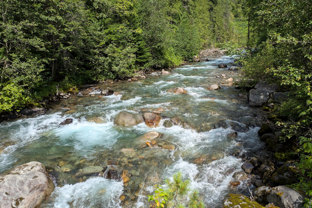 The trail generally follows the course of Carpenter Creek. There are points where you’ll get a close view of the creek and you’ll always hear it even when not easily in sight. Views of this vigorous mountain creek are quite lovely and worth a peak when you get the opportunity.