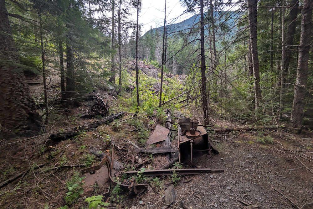 Before turning around and heading back to our vehicle, we ventured a little further down the trail to check out another little attraction. Not too far west of Alamo Siding, Galena Trail crosses to the north side of Carpenter Creek where it stays all the way to New Denver. It makes this crossing, not via a bridge, but with a cable car.