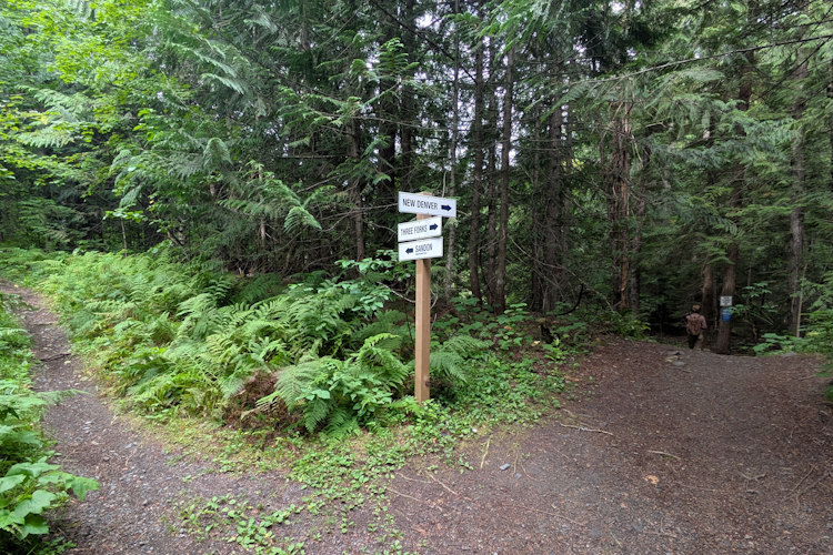 Early on you’ll encounter a fork in the trail. It too has signs directing you to continue on Galena Trail heading to New Denver or a second trail heading to Sandon. I’m unaware of a name for this trail to Sandon but it does suggest you can hike all the way to this infamous ghost town should you wish.