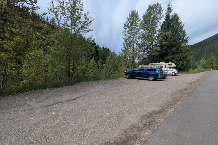 We began our hike at the trailhead near Three Forks. You’ll find this trailhead 8.5km east of New Denver immediately on your right after turning onto Sandon Cody Road from Highway 31A. A modest roadside gravel pullout serves as trail parking lot and a small sign on a pole let’s you know you’ve found the right place.