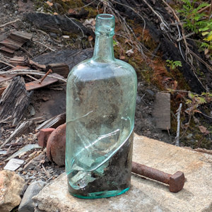 We spent a good amount of time probing the ruins. The sheer size of the place and the rusted ironworks grabbed most of our attention. Nothing valuable remains, of course. A cracked glass bottle was a neat find. And there were some pretty rocks around, though nothing I would describe as silver ore. Certainly, more interesting than what we found at the Payne Concentrator on our K&S hike later that same day.