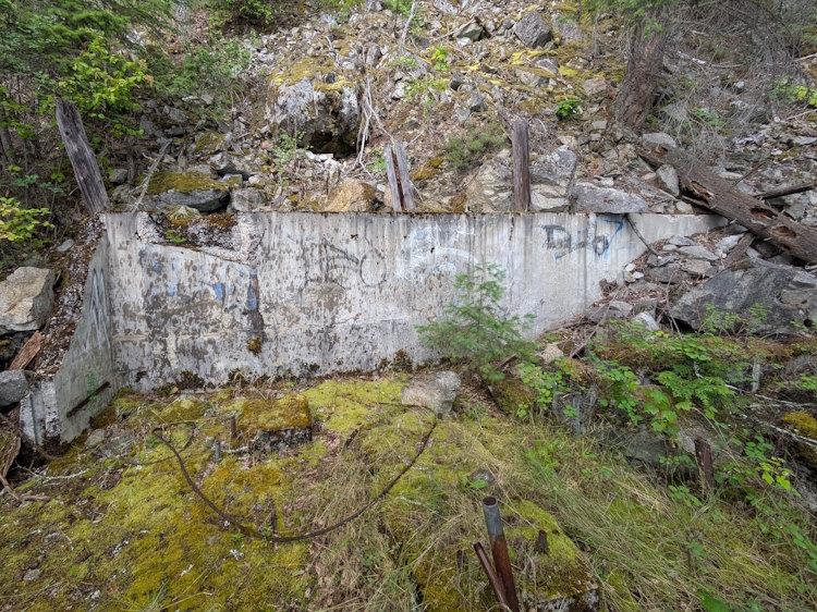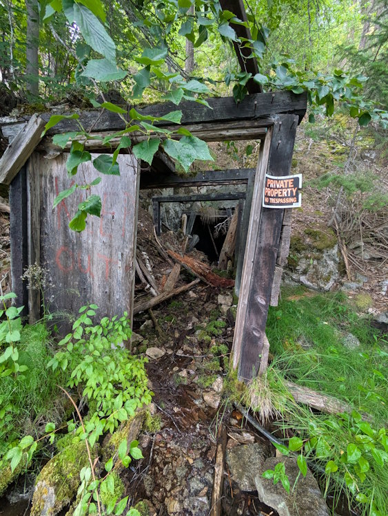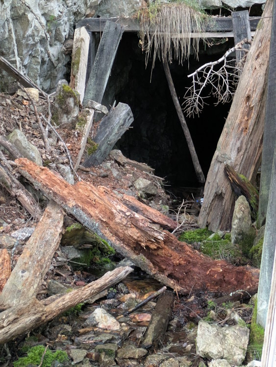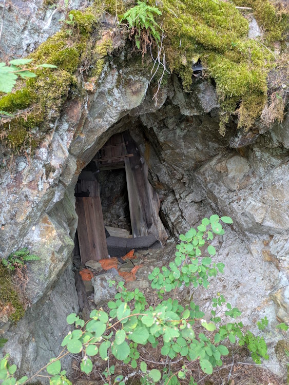 You’ll pass the odd abandoned adit cut into the rock. The one we saw was small and partially blocked. I don’t recommend entering any of them, but this one didn’t look like it had much to see inside anyway.