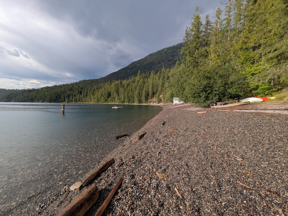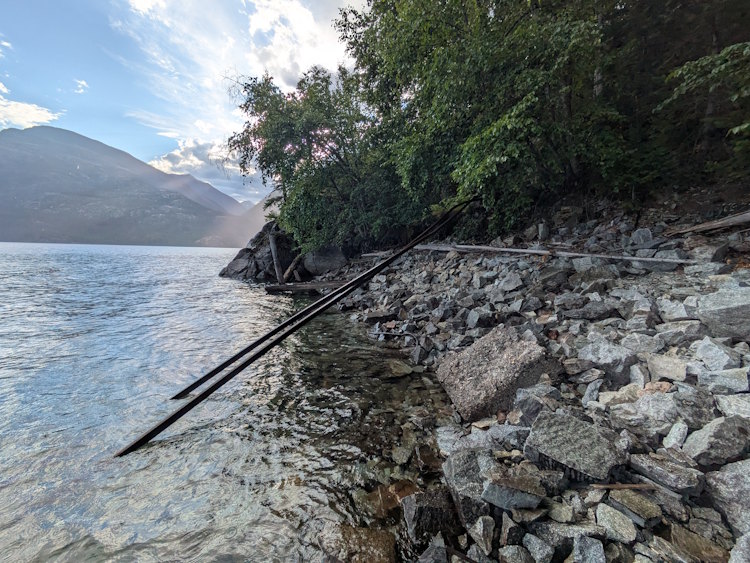 We made our way back to the highway and headed north to New Denver, conveniently on the way to our campsite in Rosebery. There we would hike to the Molly Hughes Mine ruins on the eastern shore of Slocan Lake. And this time, finally, we got to our destination.