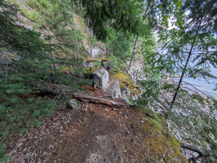 At one point we noticed a small, newish looking bench set on a prominence of rock overlooking Slocan Lake. Someone obviously appreciates a beautiful view. We were more interested in getting to the mine ruins, but if you live nearby and do this hike regularly what a great spot for some introspection.
