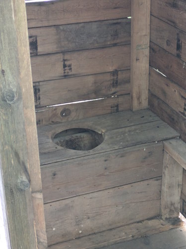 Beside the cabin is a vintage outhouse which is fun. Not for use, obviously, but for contemplation of life before indoor plumbing. And a picture of someone inside with their head visible is always good for the post-trip slideshow.