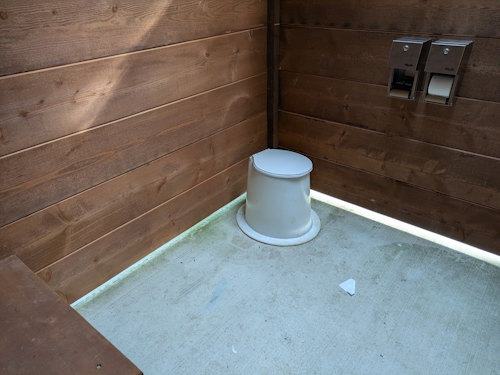 Along the way you’ll pass a newly constructed pit toilet. This is a big, modern facility with plenty of space for those requiring accessibility or as a changeroom. There’s also a picnic table next to the pit toilet which is, umm, an odd location.