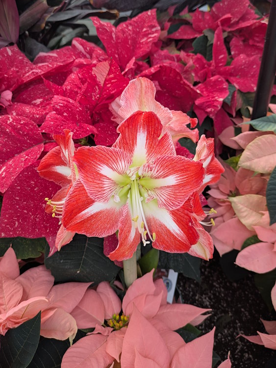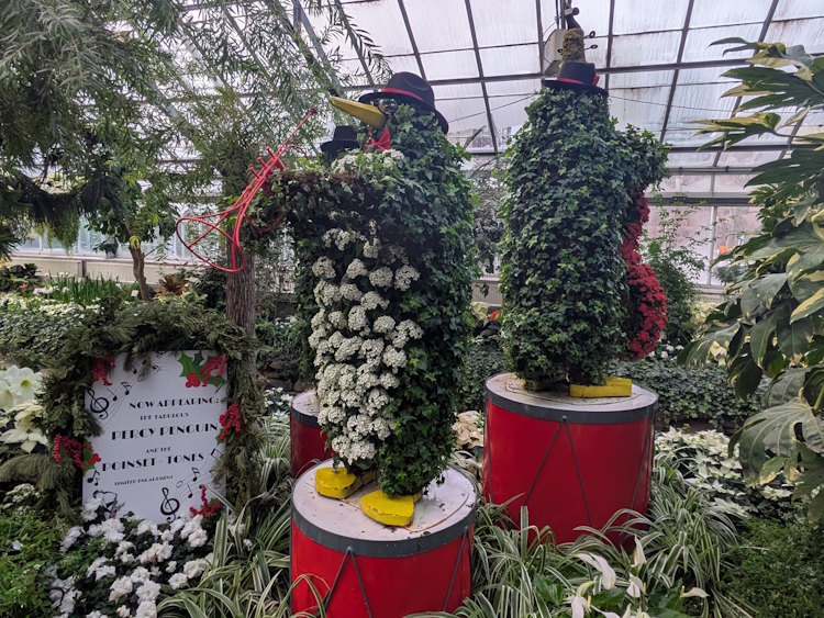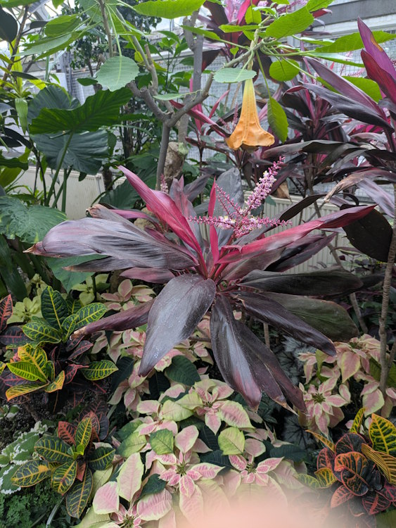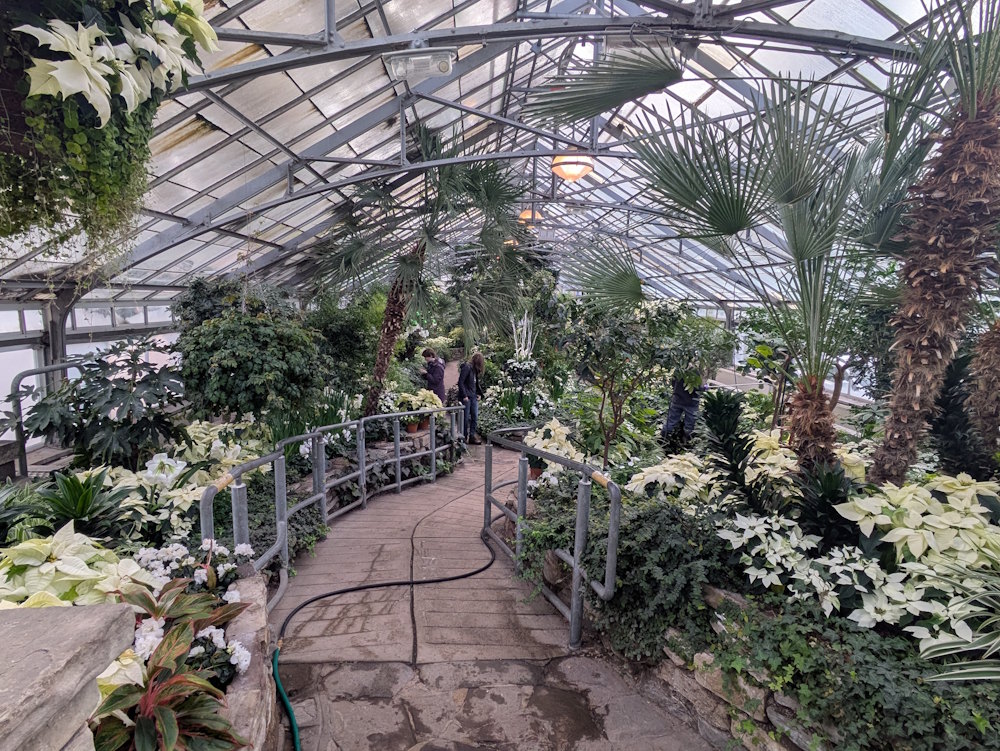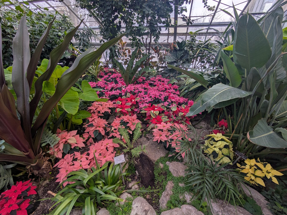 As you would expect, the Tropical House is alive with colour and exotic flowers. Even the varied poinsettias fit right in here, though they seem rather tame compared to funky treasures like the Bird of Paradise.