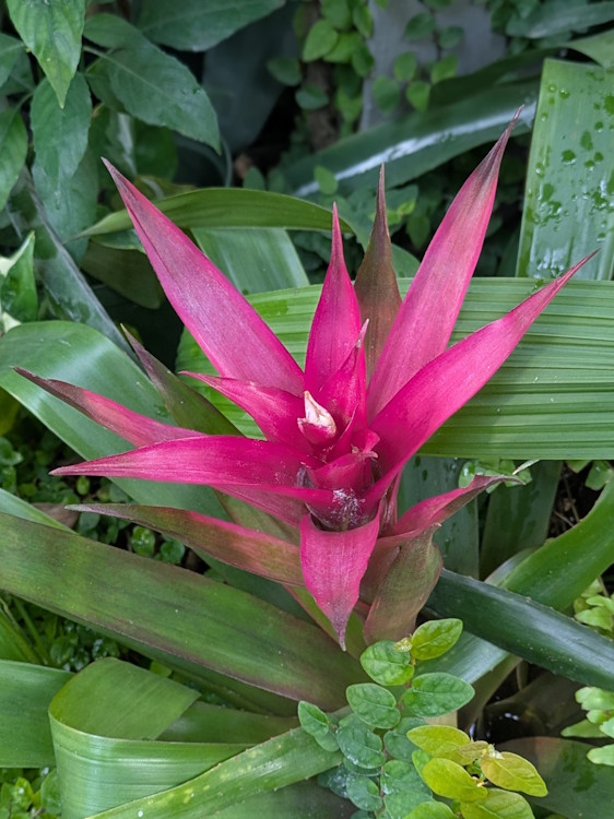The Orchid and Bromeliad House, to the untrained eye (that would be me), looks quite tropical. It is lush with greenery and the odd dash of colour, though I get the feeling there is even more at other times of the year. The abundance of poinsettia blooms certainly made up for any seasonal lack of colour.