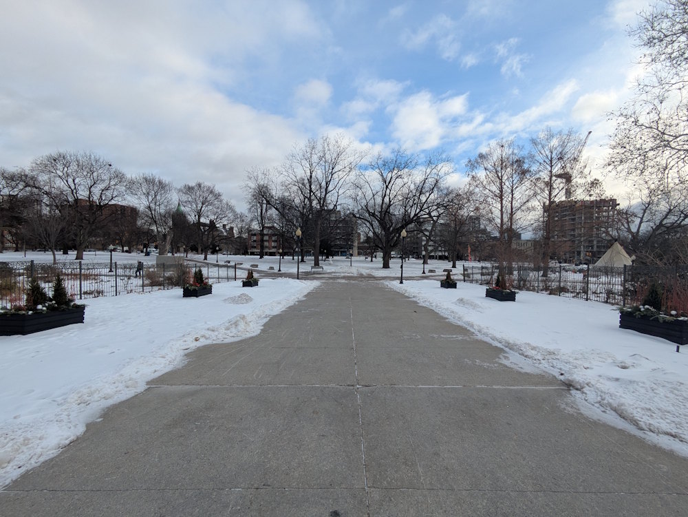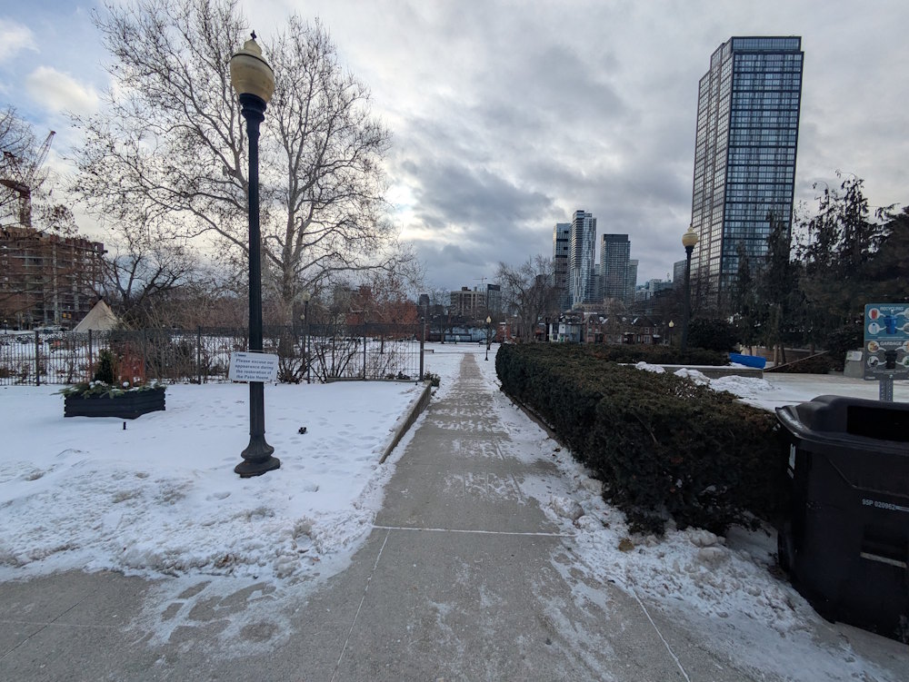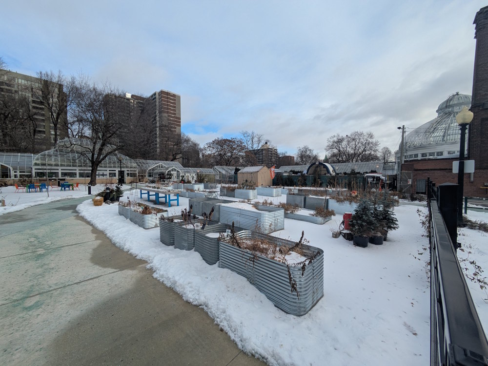 We visited in late December and all the above were dormant. I suppose the playground is operational all-season and judging by the myriad boot prints in the snow, there are plenty of hardy kids using it despite the cold. But the flora focused exterior facilities were waiting for spring much like us.