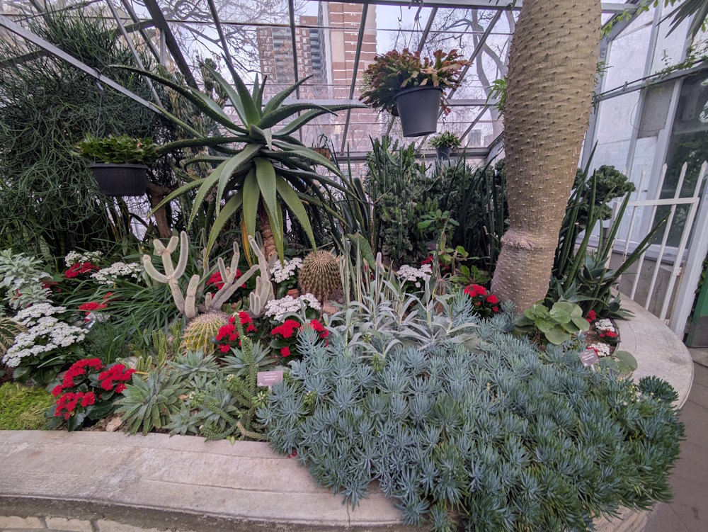 Something else unique to the time of year of our visit is the Christmas décor. All through Allan Gardens Conservatory, in literally every house, there were poinsettias. Lots and lots of poinsettias. Festive, yes, but not faithful to the climate zone of every greenhouse.