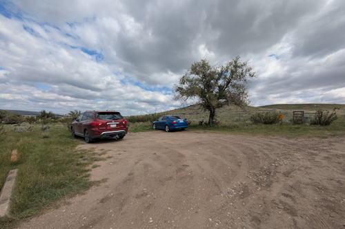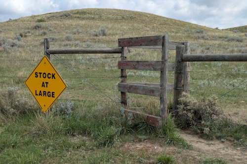 The east side of the parking lot is bound by a wire fence that extends both to the lake and beyond view in the other direction. The trail is on the other side of this fence, as is “stock at large.” This becomes relevant shortly.