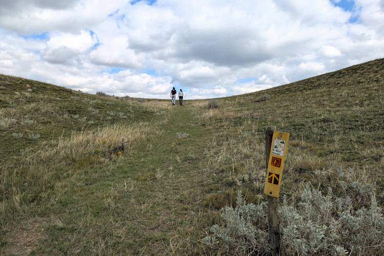 Our hike began smoothly enough. The trail is easy enough to follow as the trodden grass, cut grass, and exposed dirt make it rather intuitive. Trail marker posts and trail signage help as well, at least to start. And with no trees to speak of outside of ravines, any gain in elevation reveals sweeping views in all directions.