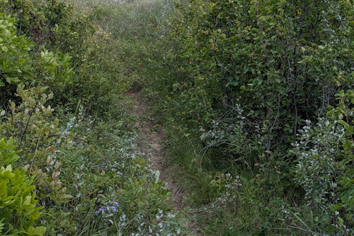 Coming out of the ravine, the trail takes a sharp turn to the right and follows the edge of the bushes. Simple enough. I mean, the beaten down grass is hard to miss and we dutifully followed it. The map told us the next point of interest was Smith Dam, so the fact we eventually ran into actual standing water didn’t strike us as odd.