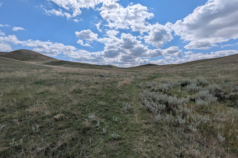 The best part of gaining elevation is the expanded view. The undulating valley walls, endless grassland with lichen-covered rocks and slashes of shrubs, big sky with marching battalions of clouds … it’s all so very impressive. And humbling. You can’t help but think of the peoples that have called this place home for millennia and those that chose to make it their new home.