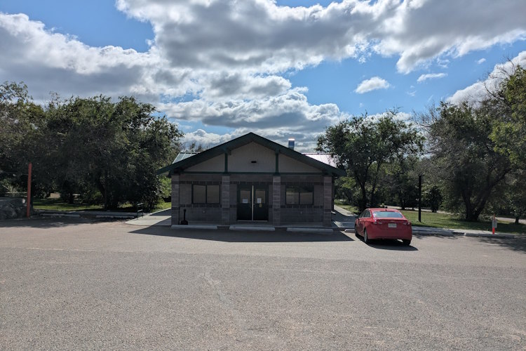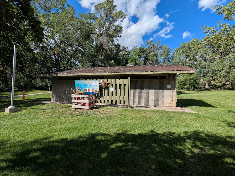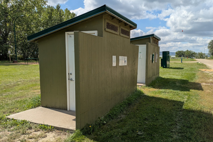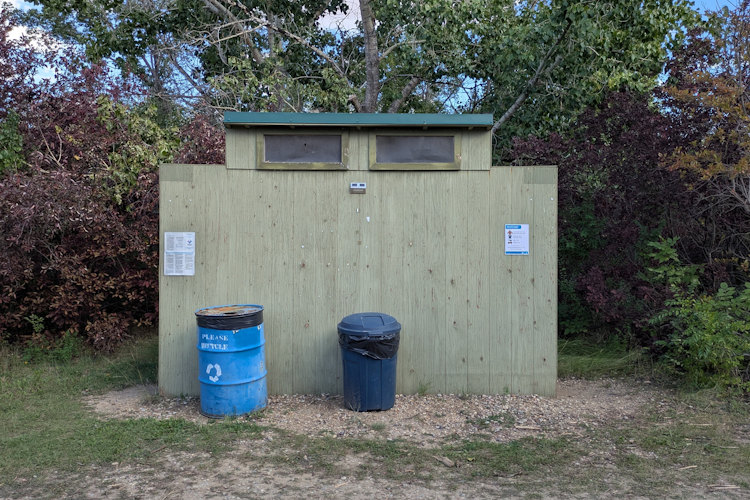 Washroom facilities consist of two sets of standalone bathrooms, one to the west and one to the east, plus a central shower house. The standalone bathrooms are the converted pit toilet structures seen everywhere at Saskatchewan Landing Provincial Park. Granted, I’m making an assumption here since I didn’t bother to look inside any of these. From the exterior they looked the same, so I just jumped to a conclusion.