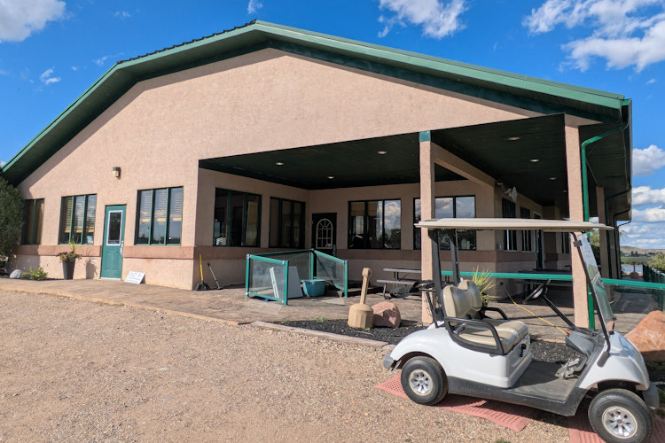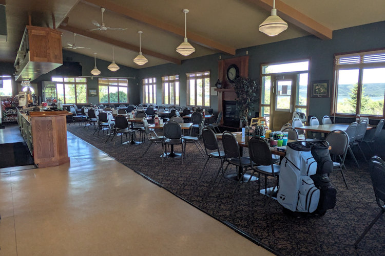 Once you’re past the gatehouse, the course clubhouse is on your right just as you approach Landing View Resort on the left. A large, gravel parking lot welcomes you, just be sure to abide the designated spots for club champions and the most recent hole-in-one maker.