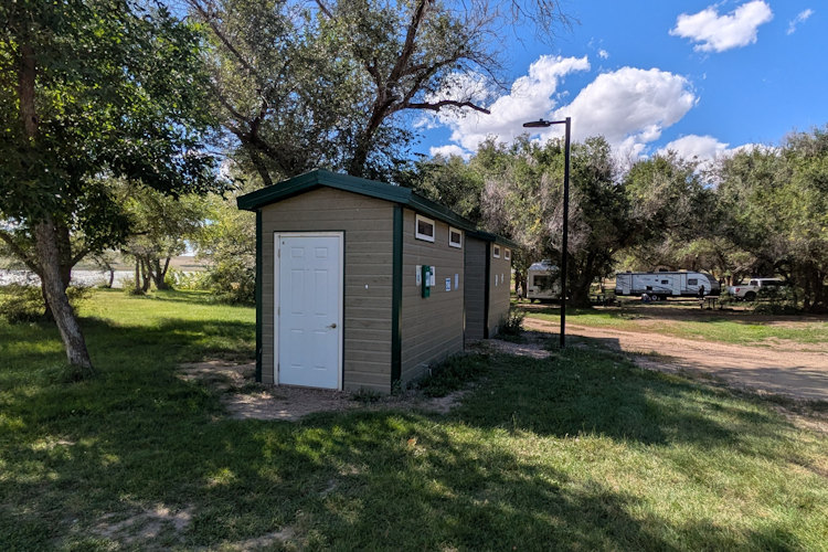 If you prefer something more modern, you’re in luck. Approximately 100m inland from the midpoint of the campground is a full-service shower house. This shower house looks quite new and serves both Riverside Campground and Nighthawk Campground. There’s a wide, gravel pathway from the campground that allows easy access by foot. It also has a parking lot if you prefer to drive.