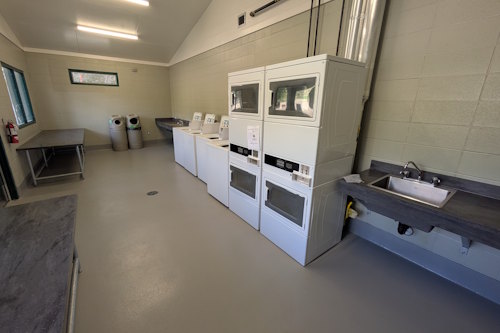 The one notable difference at this central shower house is a coin-op laundromat. This is a wonderful addition and surely welcome in a park of this size with families enjoying summer vacations. Kids and adults are sure to get their clothes dirtied up and/or sweaty while doing their favourite recreational activities. Quite a spacious laundromat too.