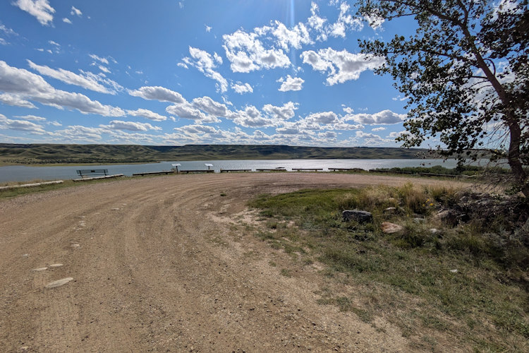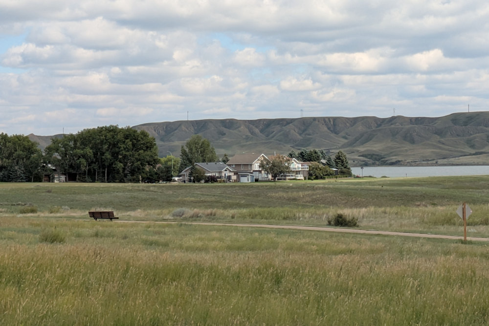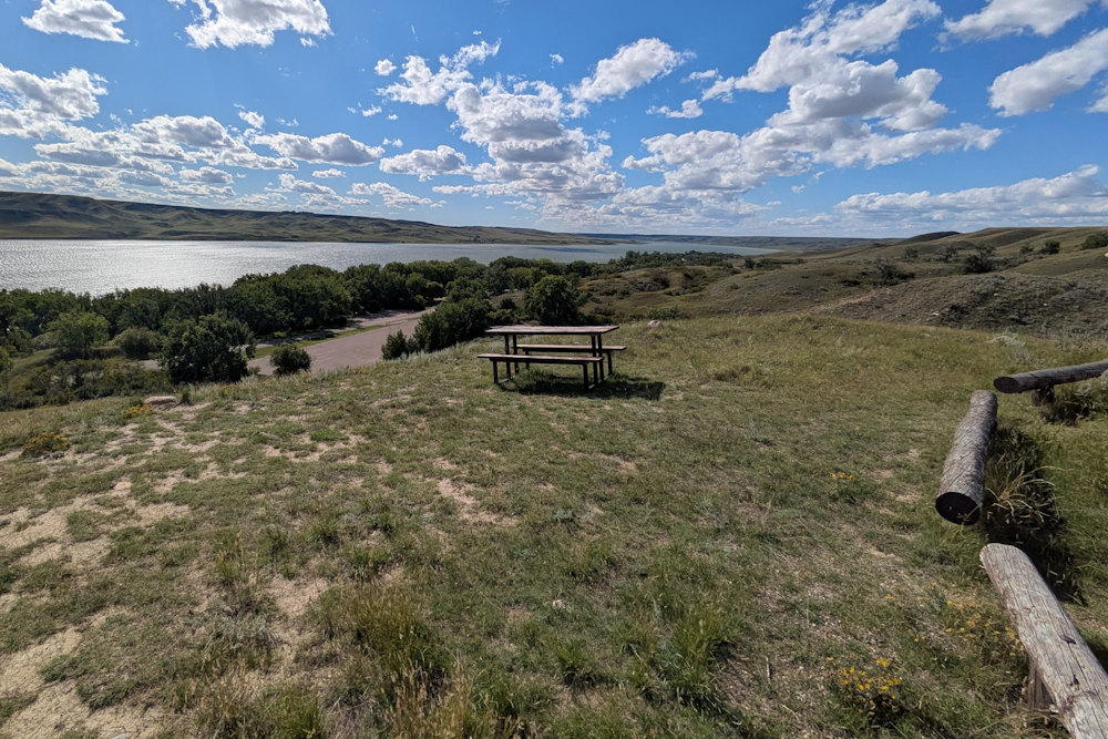 Here, the South Saskatchewan River has cut into the flat prairie leaving a ribbon of badlands along its course. The reservoir has filled some of the valley, but not all of it, and the valley walls on either side remain scarred with ravines and hills. Get up on top, though, and you’ll see for miles and miles and miles. Queue The Who earworm.