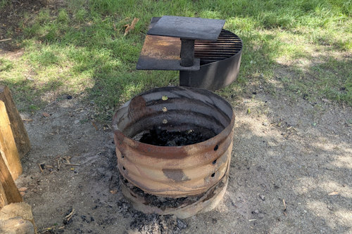 Each site comes with a picnic table and firepit. Both are identical in construct to those found in all the other campgrounds; a portable metal framed with wood top table and a corrugated steel firepit with rotating grill.