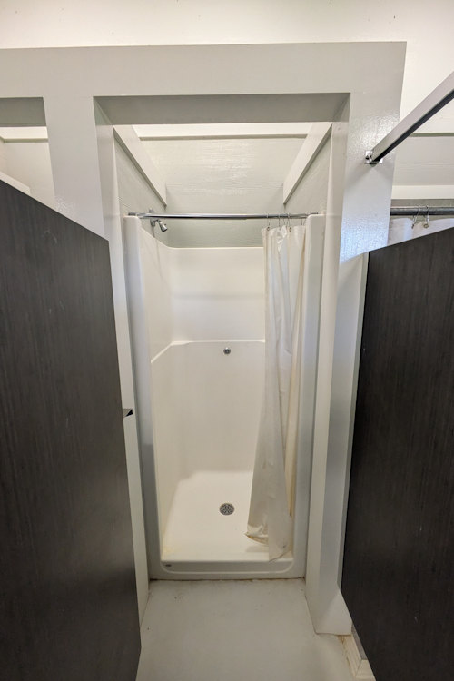 Another disappointment with the showers here were the shower curtains. While no different than most such items encountered in campgrounds, they hung from rods unsecured to the walls. They just sat on top of the cinderblocks making them far too easy to pull down. Strange, might I say lazy, way of installing shower curtains.