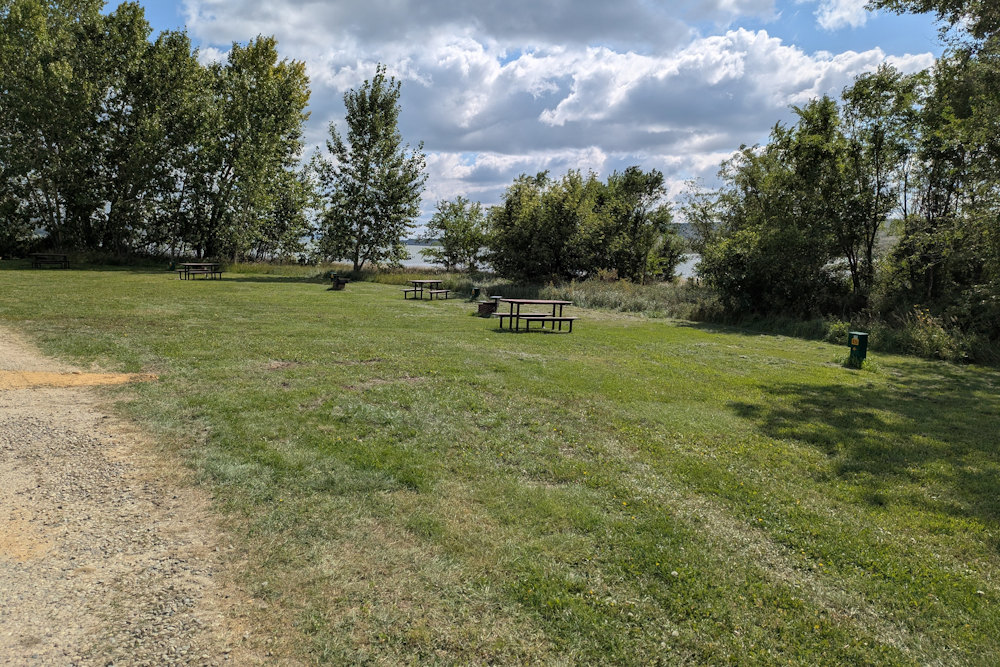 Another noticeable trait of the river backing campsites is their seemingly tent-only appearance. They are all described as back-in campsites on the Saskatchewan Parks booking site, capable of hosting RVs over 50’ in length. In reality, their combined look is a stretch of grass with a handful of spots for campers to set up tents. And honestly, they would be great for such a setup with sun, a hint of shade, and short scoot to the water.