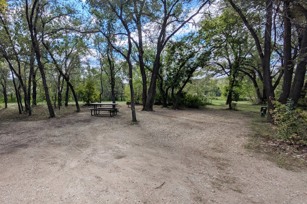 Your site choice in Riverside greatly depends on your shade preferences. The 22 inland (left side) campsites are almost entirely within a thick (for Saskatchewan) poplar/cottonwood forest. Seriously, some of them look completely hidden in the thick foliage. Not something you expect to see in this part of the country.