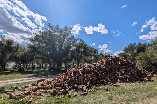 Additional, smaller wood piles can be found at the boundary between Bison Hallow Campground and Prairie Meadow Group Sites as well as at the Equestrian Campground. These are both provided out of convenience since the trip to the main woodlot would require a few kilometres of driving.